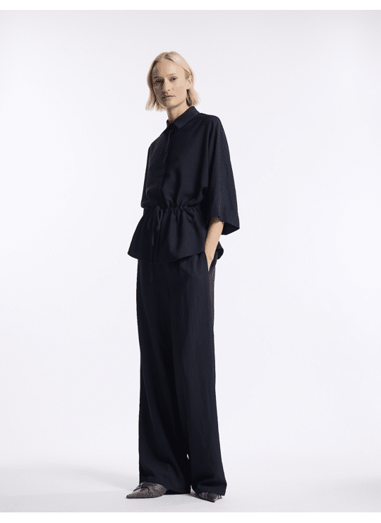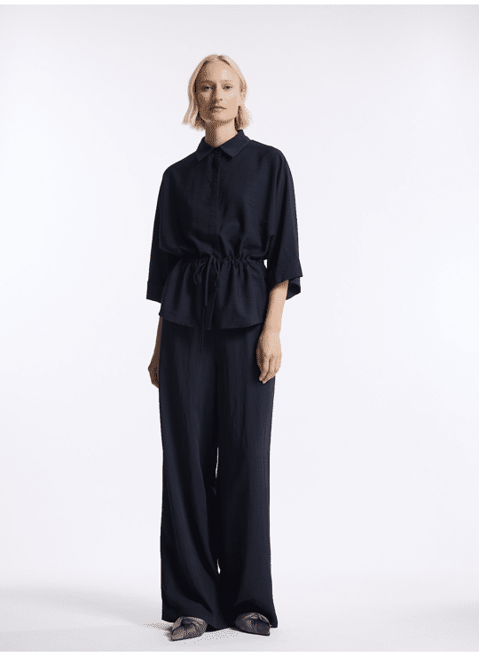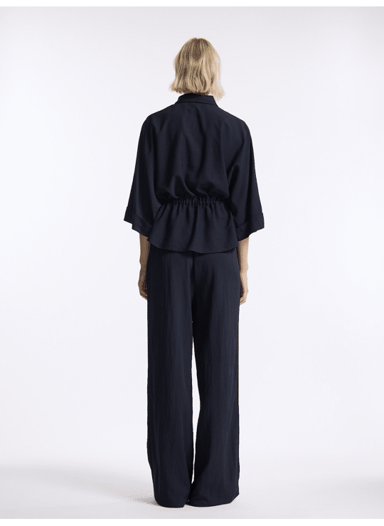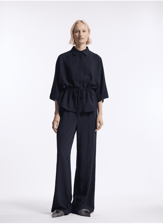 Arlyn Pant is crafted from a softly textured viscose-nylon blend, offering fluid movement and understated luxury. With a wide, elongated leg and comfortable elasticated waist, it brings effortless elegance to everyday styling.
