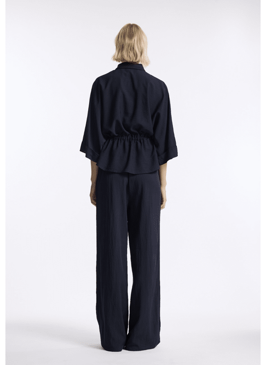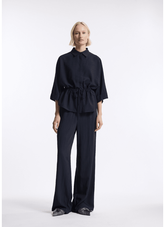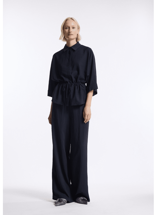 The Arlyn Shirt offers a beautifully balanced silhouette with relaxed sleeves and a softly cinched waist. Crafted from a smooth viscose-nylon blend, it delivers modern refinement with a delicate drape and understated ease.