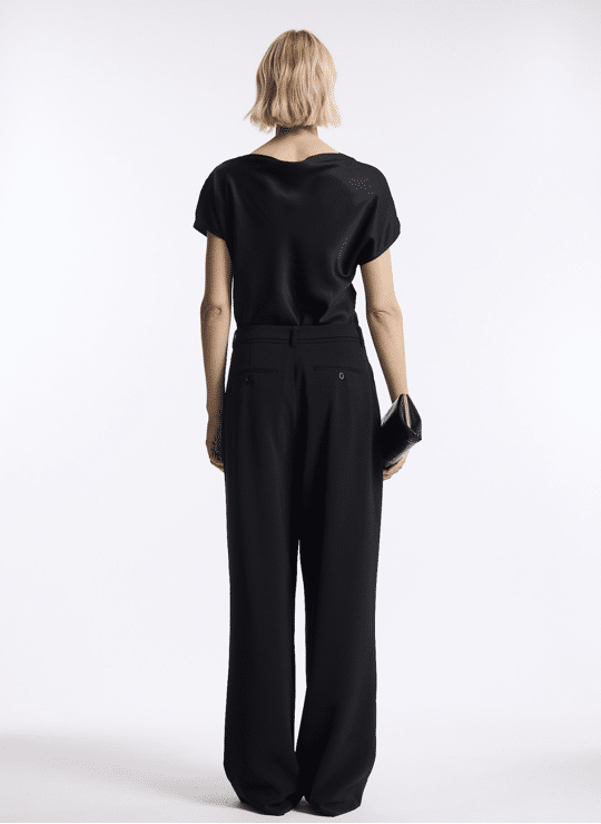 The Camille Pant offers a sculpted yet fluid silhouette, crafted in a soft Tencel blend that moves with quiet elegance. Designed with a wide leg, precise pleats, and a refined belt detail, it brings a modern sense of ease to elevated everyday dressing.