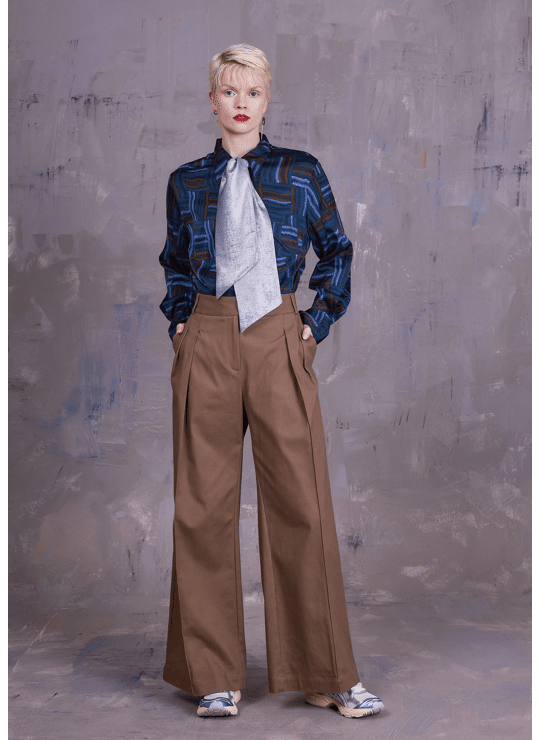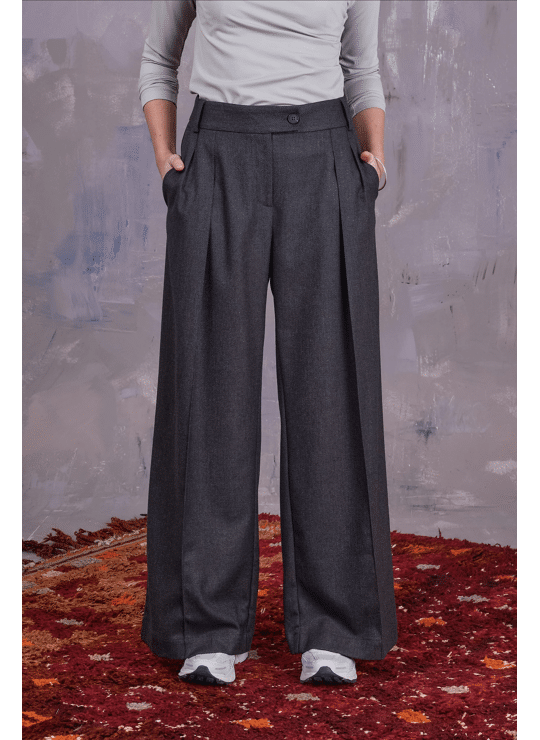 These trousers have a generous volume in the legs, the pleats provide a nice flow, and the stitched pleat adds length to your silhouette. A favourite for years. Made in a melange twill fabric in forest green with a grey undertone. Combine for a full look with the Gaston blazer in the same fabric.