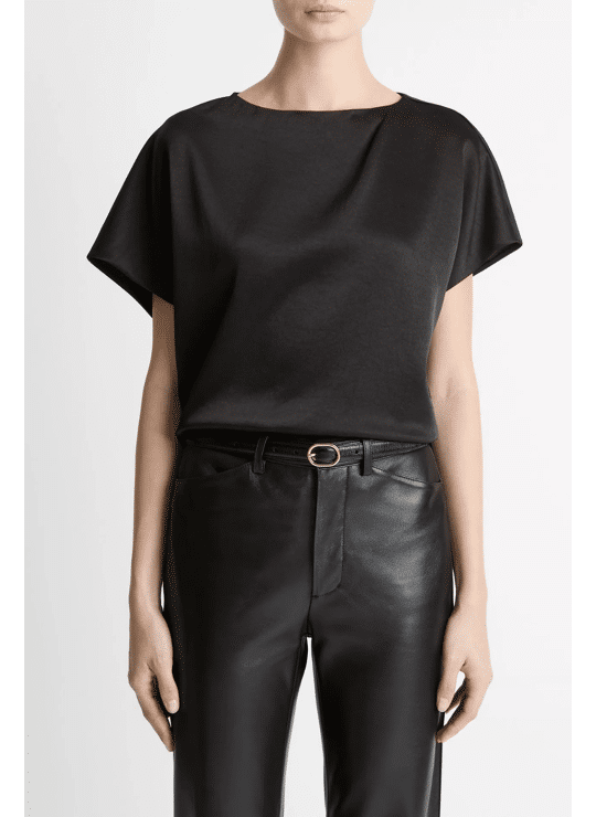 We took the fluid satin responsible for our best-selling bias pant and reimagined it as a blouse.