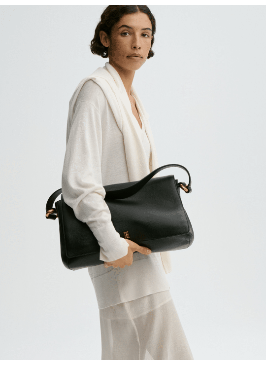 A timeless shoulder bag made for days on the go – such is the Lelou design. Made in the supplest leather, it will safely store your computer and other essentials. It features a wide strap, a front flap opening, magnetic closure, a small inside pocket and the distinct monogram emblem.