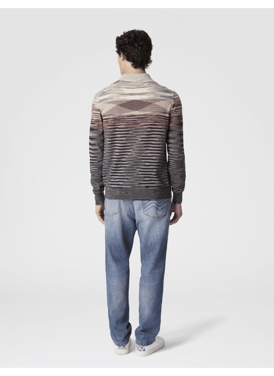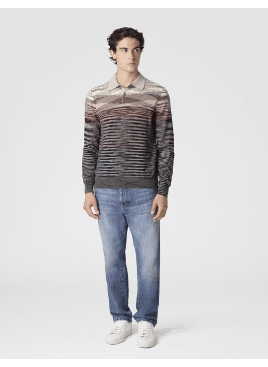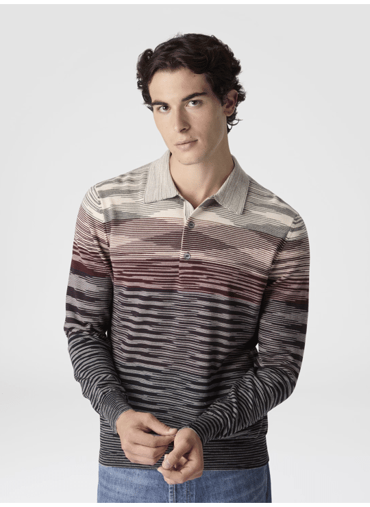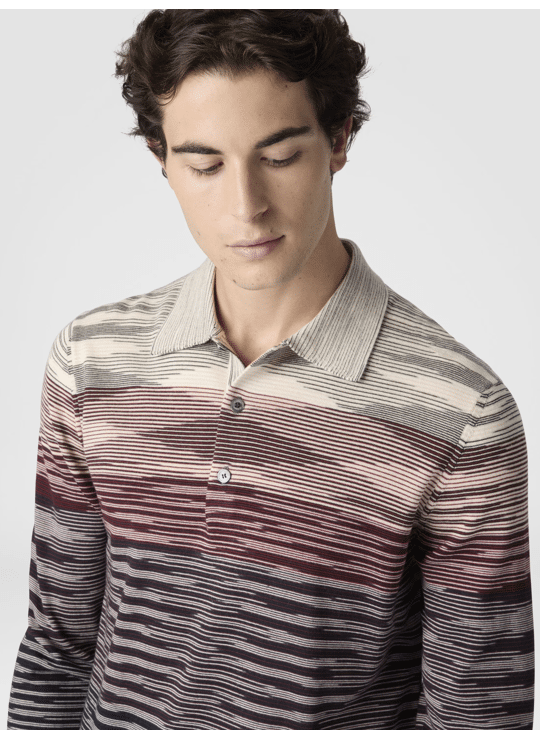 The classic men’s polo is renewed with a striped motif on slubbed wool, creating a garment that merges tradition and contemporary style. The richly textured workmanship enhances the simplicity of the design for a look that’s both sophisticated and relaxed.