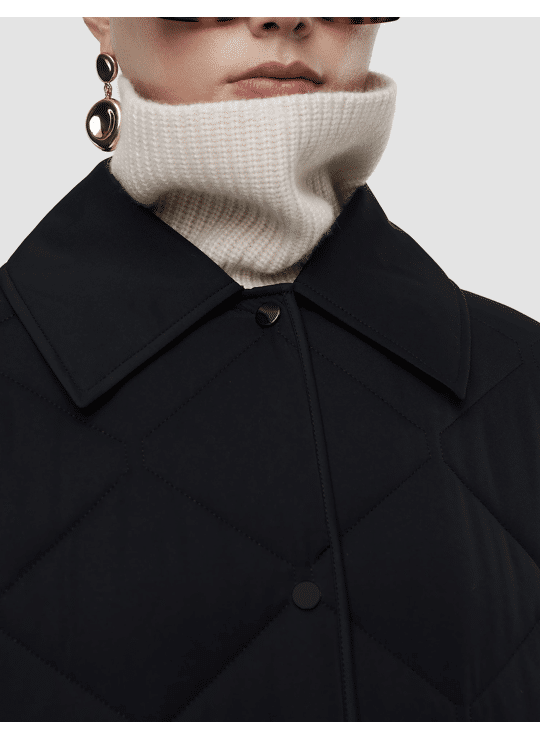 The Penny Quilted Coat is an oversized, cocoon-shaped silhouette. Crafted with lightweight padding for warmth without weight, it's ideal for effortless, everyday wear. Elegantly finished with a classic shirt collar, welt side pockets, and a snap-front placket.