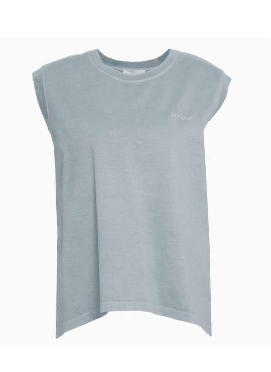 Regular-fit, sleeveless crew-neck T-shirt with embroidered logo on the chest. Treated heavyweight jersey. Dondup logo. Made in Italy