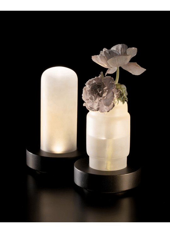 Ambience does not allow itself to be confined in space, and neither does this LEX ambient light. No messing around with wires and sockets. Instead, it is rechargeable via the wooden base and easy to carry with you. The frosted sandblasted glass softens the light, while a dimmer ensures that this lamp emulates the magic of candlelight. It manages that for a long time, given that the LEX table lamp lasts up to eight hours.