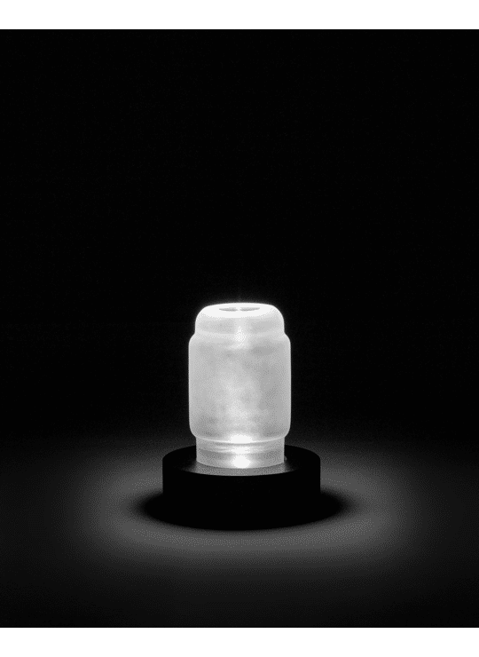 Besides LARA and LYS, LUCE is the third design in the series of illuminated vases. LUCE has a slightly more sculptural shape as if two cylinders were placed inside each other. At the top, LUCE is rounded around the small opening that allows a single flower to be placed in a beautifully upright position.