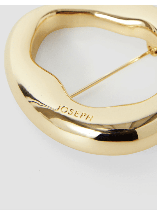 Pin to outerwear or soft knits, the Bean Brooch is a sculptural broach style in a gold-tone finish. The ‘bean’ is an exclusive studio-designed organic shape, appearing in various forms across the collection.