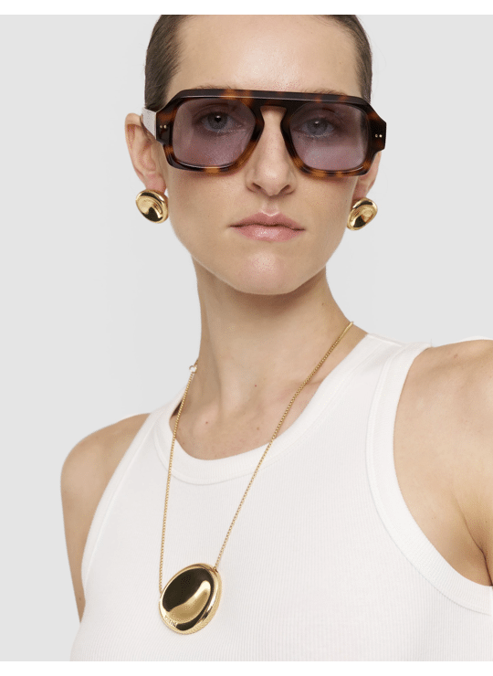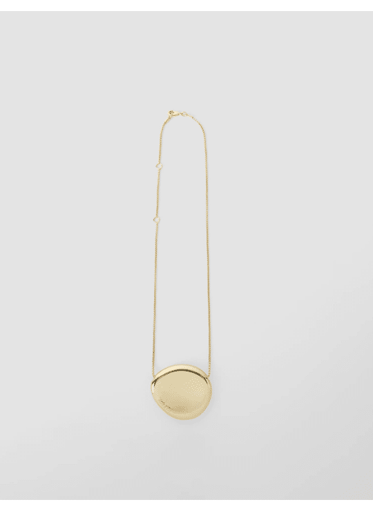 The Bean Pendant Necklace is a fine chain necklace which can be worn at three lengths. The ‘bean’ pendant is an exclusive studio-designed organic shape, appearing in various forms across the collection.