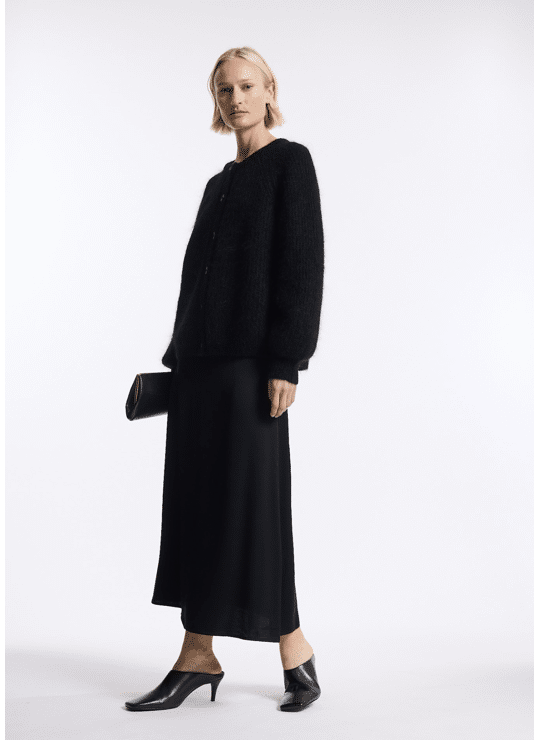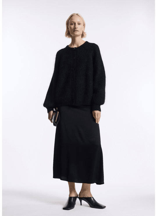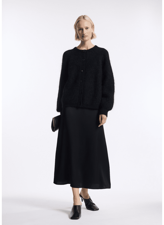 The Cardin Cardigan is a softly structured, ultra-light knit crafted from a luxurious mohair-wool blend. Designed with a relaxed silhouette, raglan sleeves and a subtle volume that drapes effortlessly, it offers a refined yet laid-back look.
