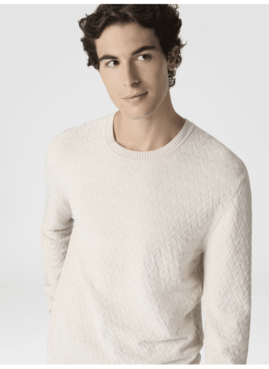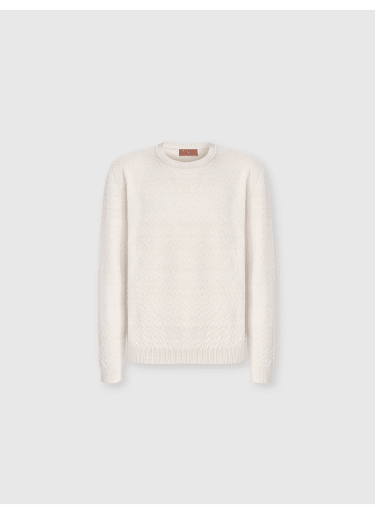 Crew-neck wool and cotton pullover with tone-on-tone zigzag pattern