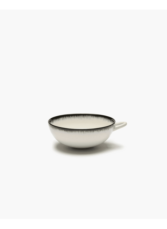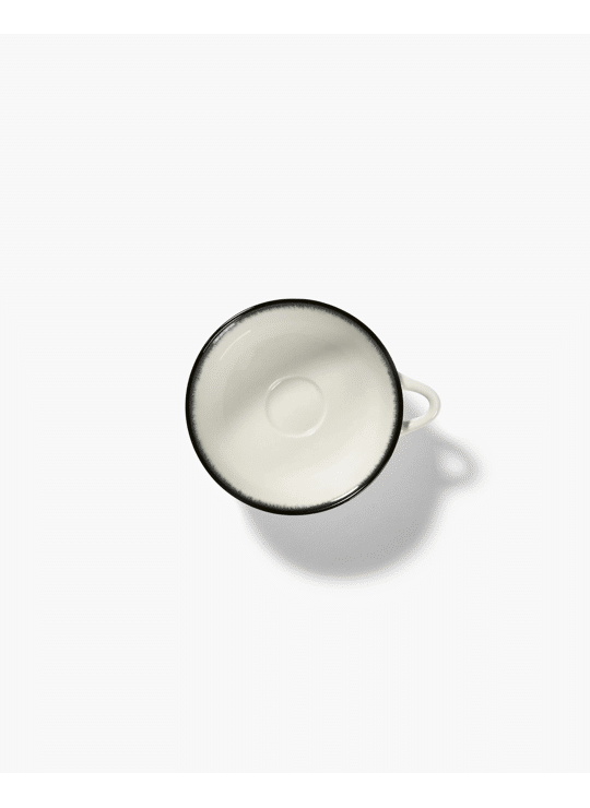 The cups are bowl-shaped with a horizontally placed ear. They come in two sizes and different versions, also in plain black or off-white, without added dégradé.