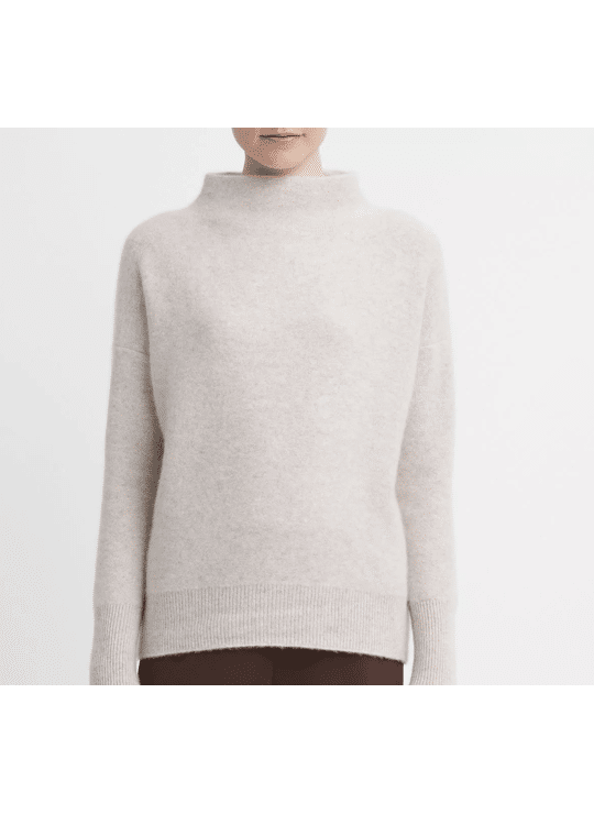 Crafted in two-ply cashmere yarn that is boiled for added warmth and a lofty finish, our signature plush funnel neck sweater is finished with an easy body, dropped shoulder, and fitted sleeves.