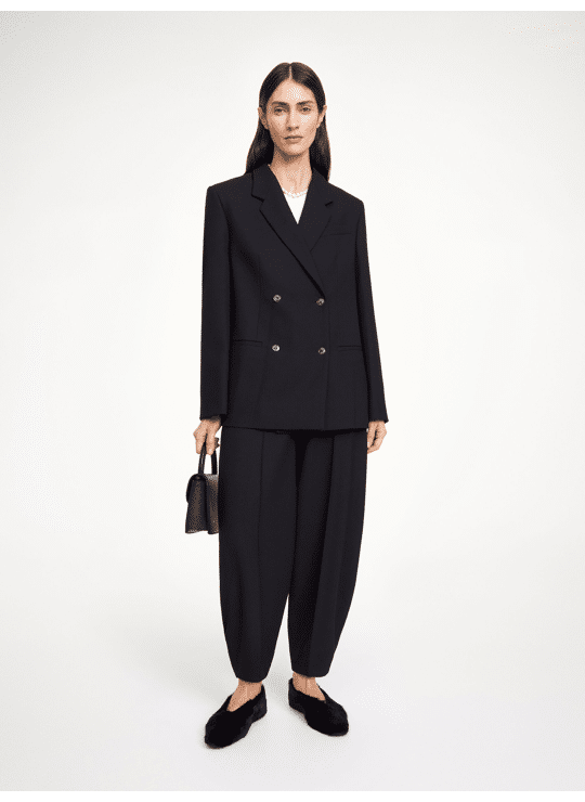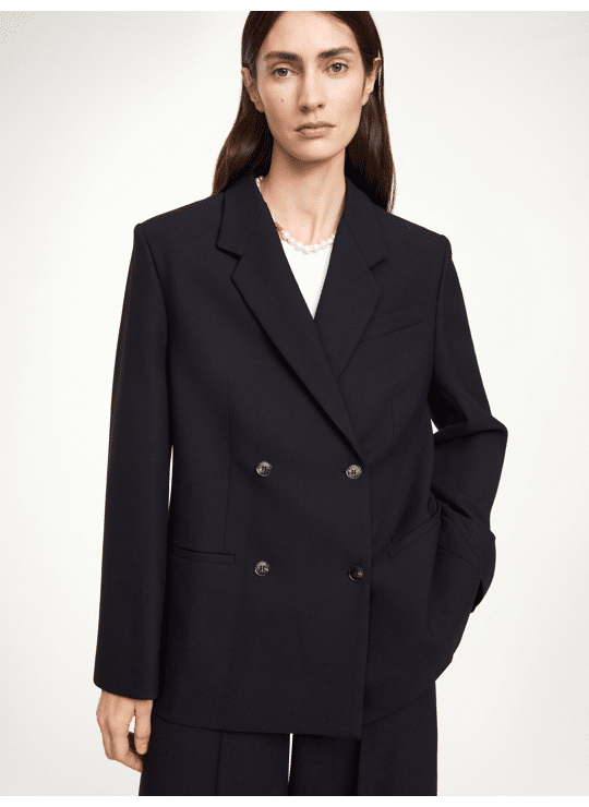 A tailored look never stops being timless. The Ramona double-breasted blazer is detailed with front pockets, double vents, and notched lapels. Designed in a slightly oversized fit, it brings a modern edge to a classic tailored shape.