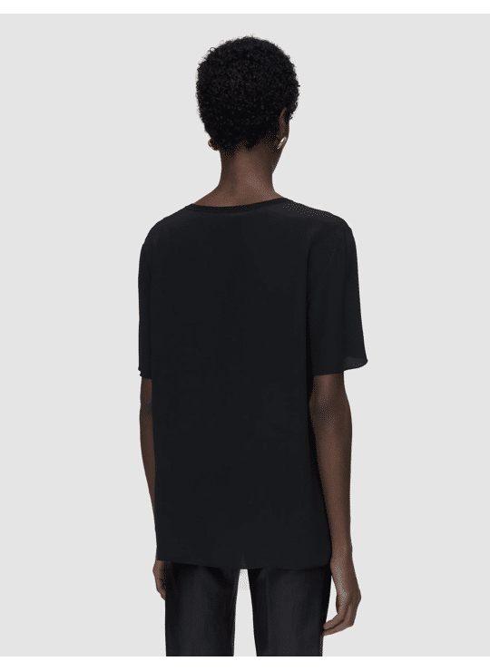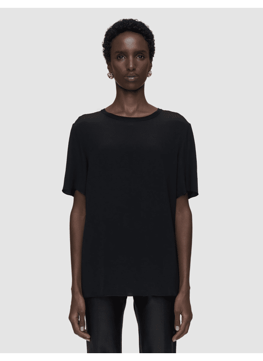 The Rubin Crepe de Soie Silk Blouse is a regular fit, straight cut top, crafted from a lightweight silk crepe. This essential style is an elevated take on the everyday t-shirt; minimal and crisp finished with a tonal ribbed neckline.