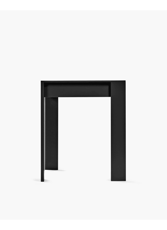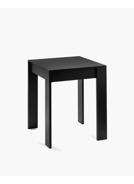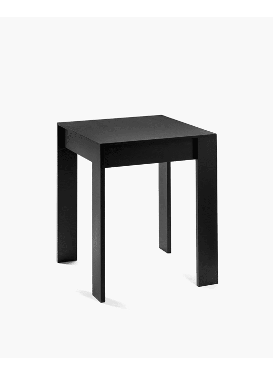 The Malé table finds a clarity of form in repetition and regularity. Elongated rectangles come together to create a composition of flat plates with the same width. Laid horizontally, they make the support for the square table-top. Vertically, they become the legs of the table, sitting flat on the outer edge at each corner. Malé is available in black, off-white and cream, but a red version suggests additional dynamic possibilities for bold contrasts in an interior arrangement.