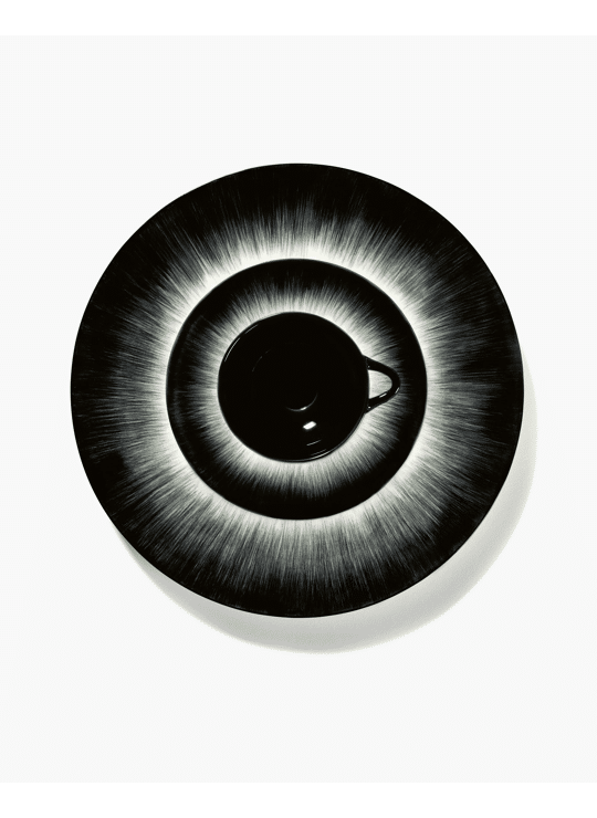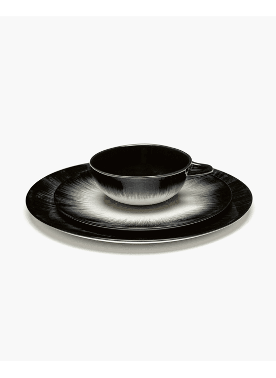 In Dé, the play of chiaroscuro – light and shadow – which is so characteristic of Ann Demeulemeester's style, is translated into tableware. The result is a collection of shadow paintings on porcelain.