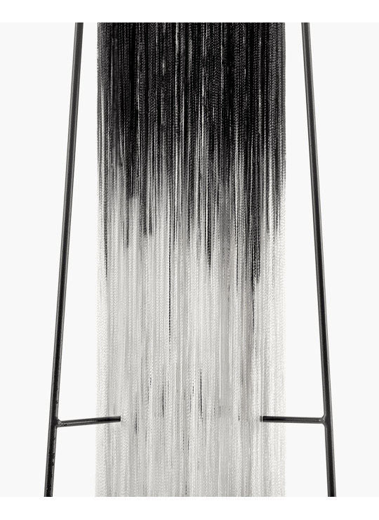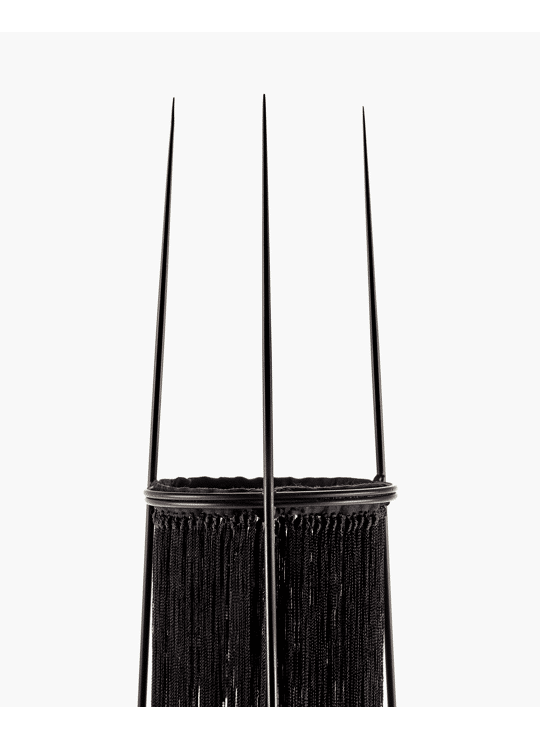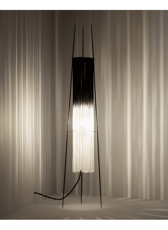 The long viscose threads in hand-painted gradients are grasped by Kiki’s three razor-sharp needles. Despite their extreme fine points, these needles provide sufficient stability for the lamp.