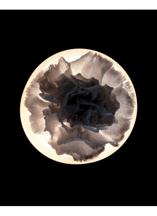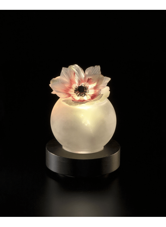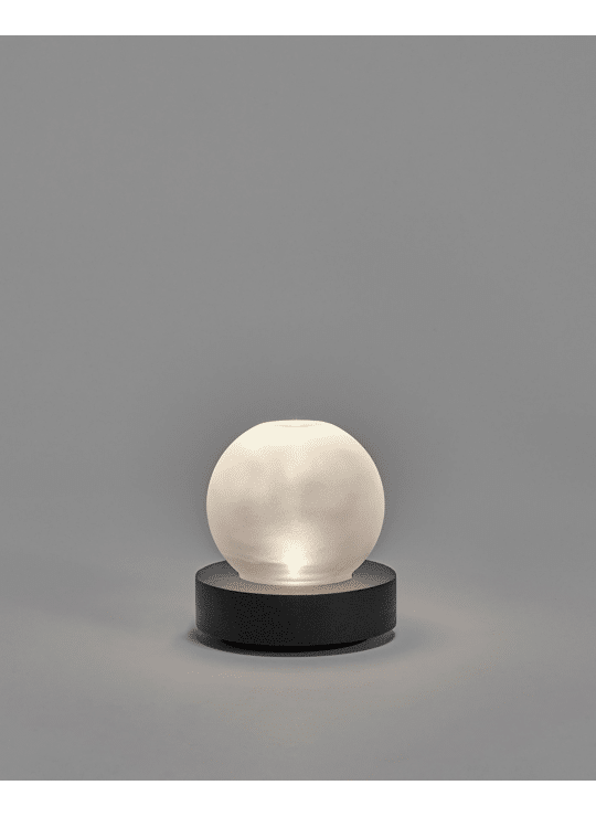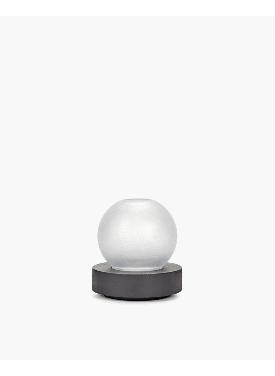 The LARA vase follows the same principle as the LYS: it is a vase in a sandblasted glass with a rechargeable LED light source in the wooden base. The frosted glass directs the light into the petals. Charging is carried out via the wooden stand into which the vase can be placed. LARA is characterised by its convex shape. The vase’s top opening is not overly big so that even larger or single flowers can stand up easily.